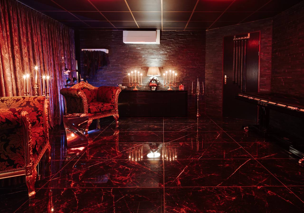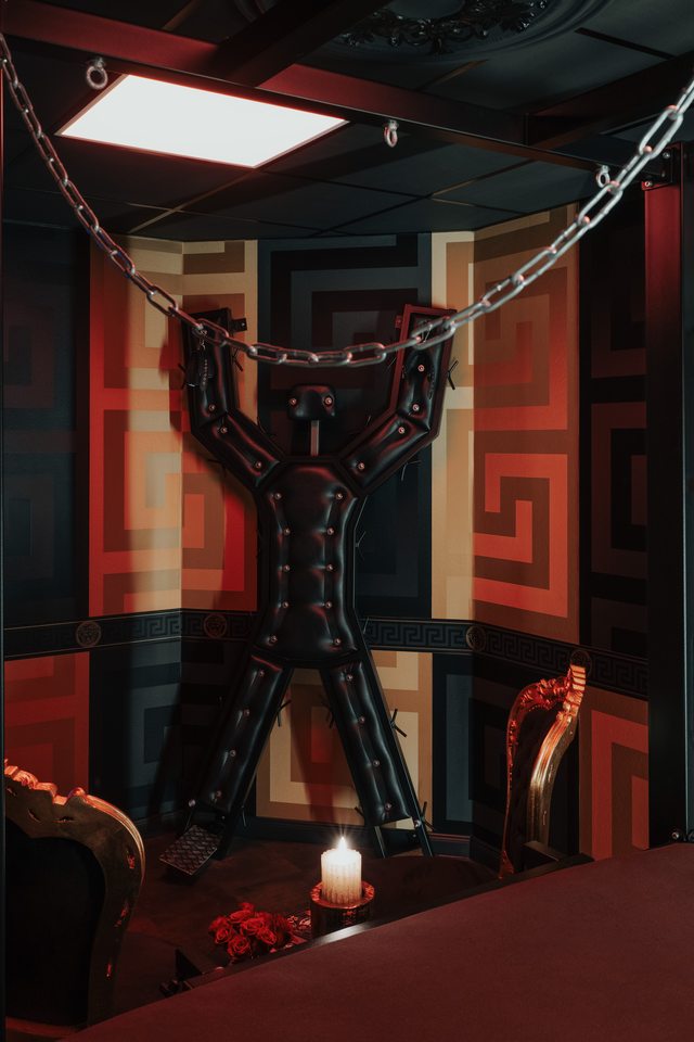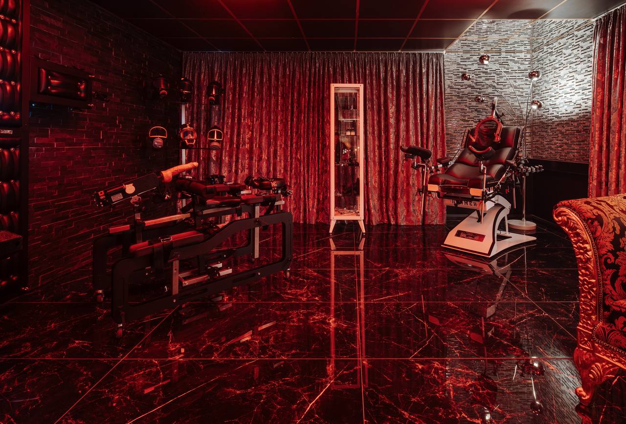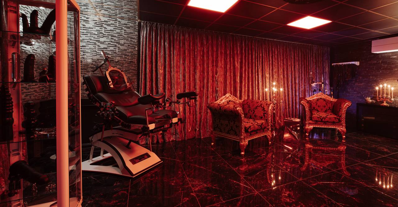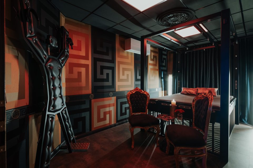 Hochwertiges Mobiliar, Interieur und Equipment findet sich überall im Kinky Domination. Für die richtige Stimmung sorgen spezifische Themenräume, wobei hier viel Wert auf Farb- und Lichtgebungen gelegt wurde.