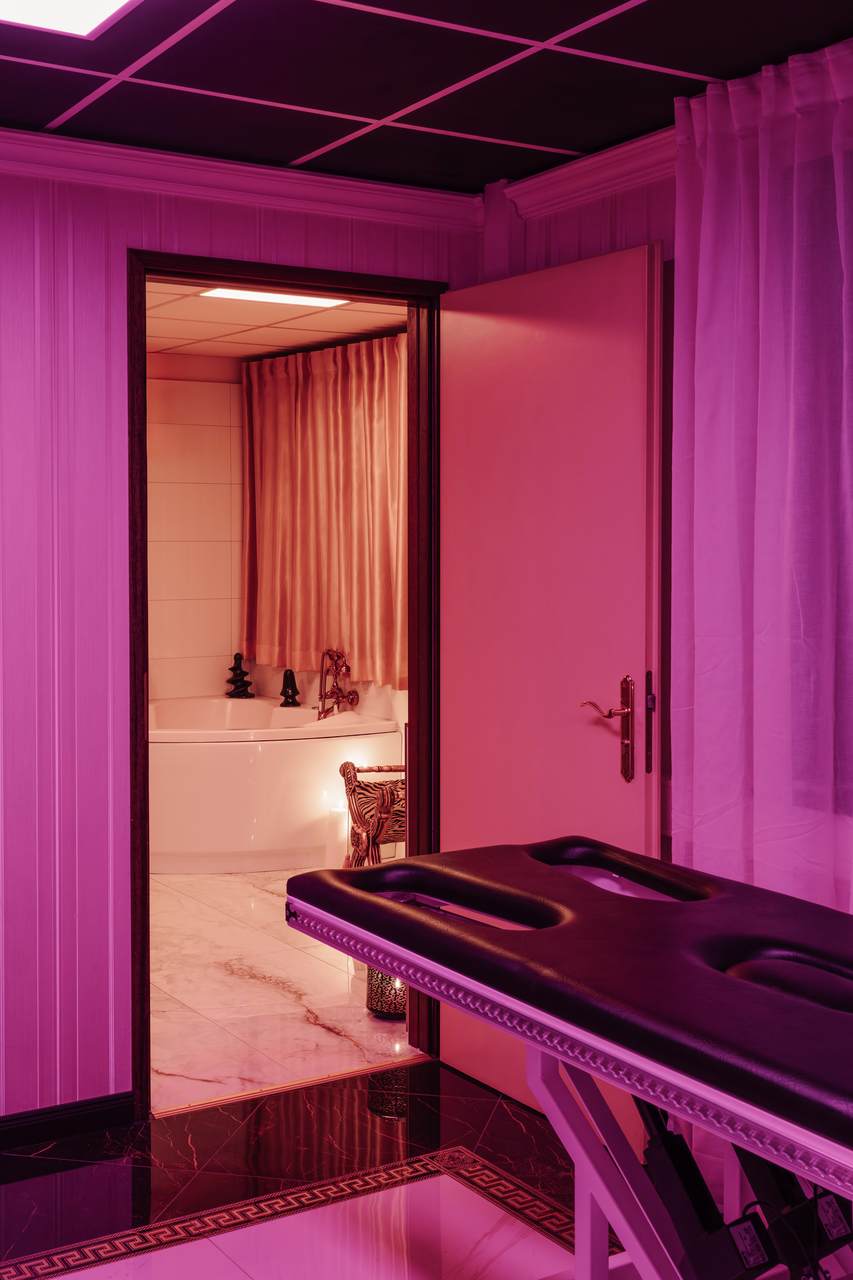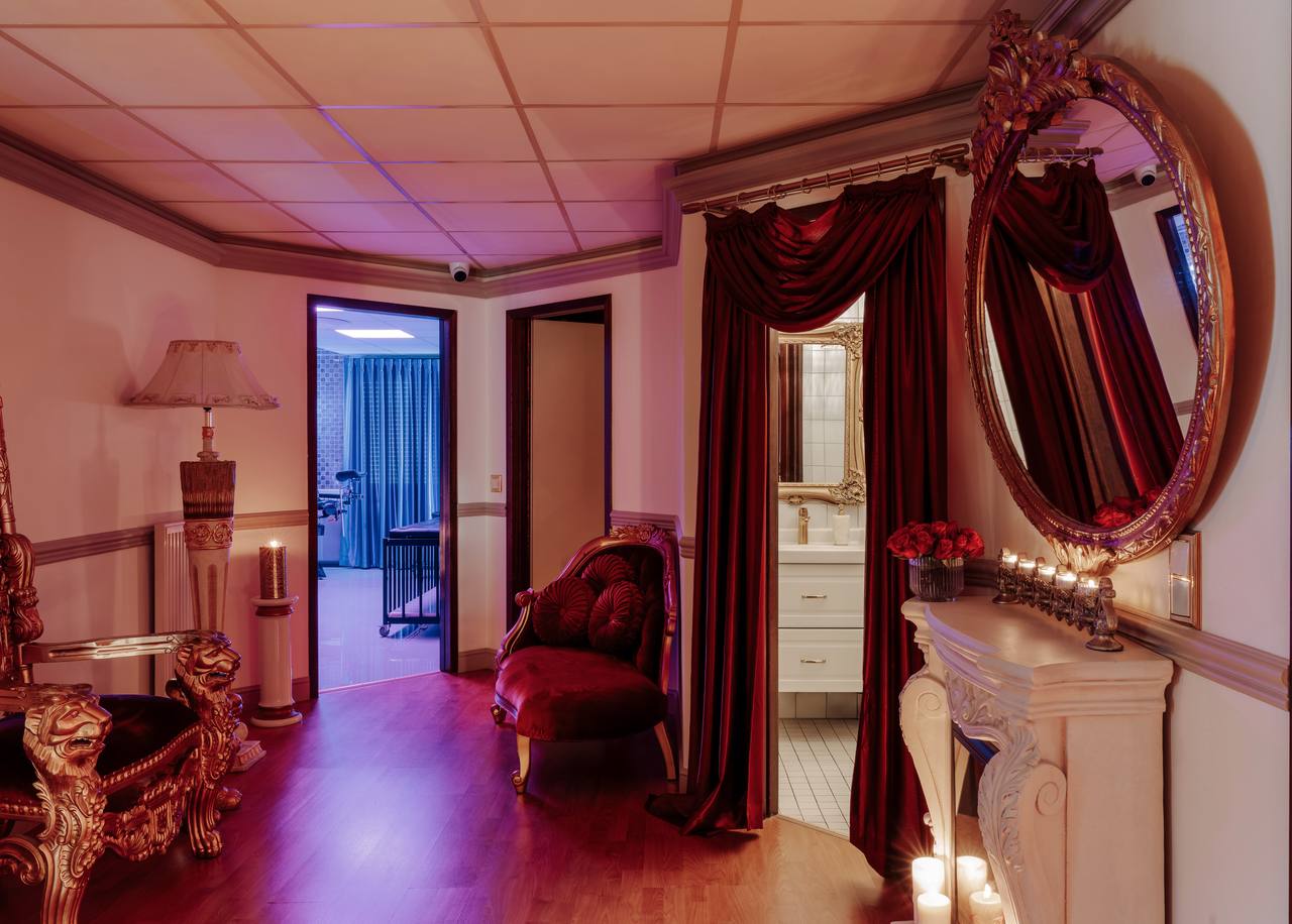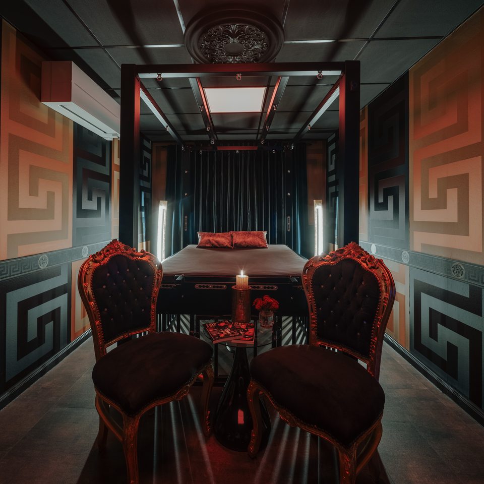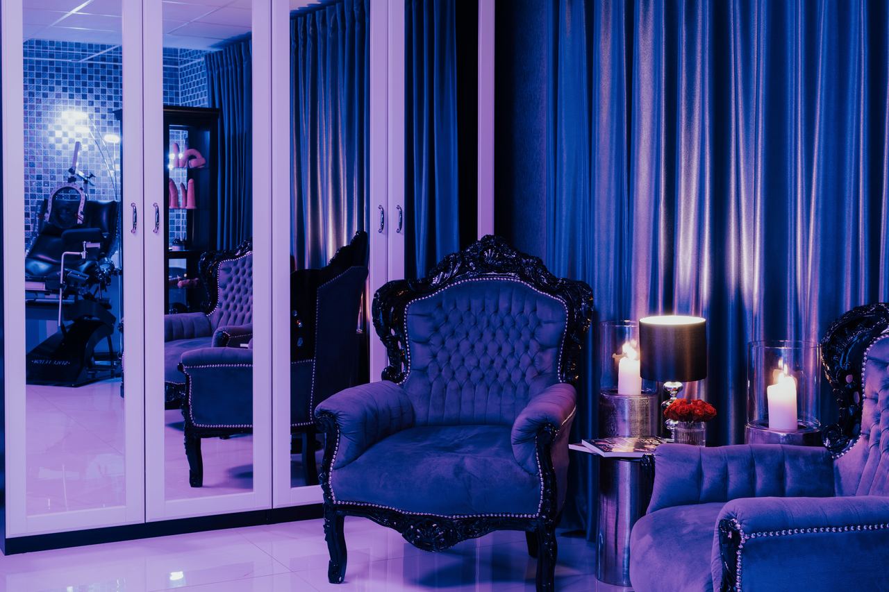 Hochwertiges Mobiliar, Interieur und Equipment findet sich überall im Kinky Domination. Für die richtige Stimmung sorgen spezifische Themenräume, wobei hier viel Wert auf Farb- und Lichtgebungen gelegt wurde.